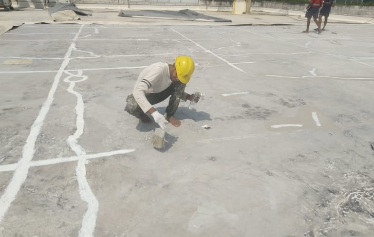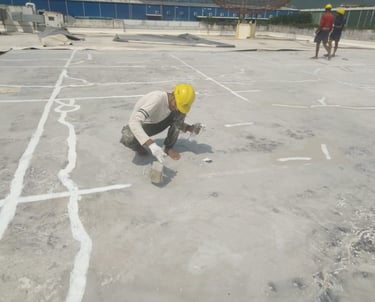 A pharmaceutical manufacturing facility was facing water seepage issues on the rooftop due to surface cracks and weather-related deterioration of the concrete slab. The Kethan Engineering team carried out a thorough inspection to identify the damaged areas and leakage points. Cracks were carefully treated using specialized repair compounds, followed by the application of a durable waterproofing system across the rooftop surface. The treatment effectively sealed the structure and provided long-term protection against water penetration, ensuring the facility remained safe and operational even during heavy rainfall.