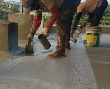 This project involved terrace waterproofing for a residential building, where the roof surface had begun to develop micro-cracks, allowing rainwater to seep into the slab. The Kethan Engineering team thoroughly prepared the surface and installed a reinforced waterproofing membrane across the terrace. The treatment included sealing vulnerable joints and applying a protective waterproof coating to create a strong barrier against water penetration. This system improves the durability of the roof slab and prevents future leakage during heavy rainfall, ensuring long-term protection for the building